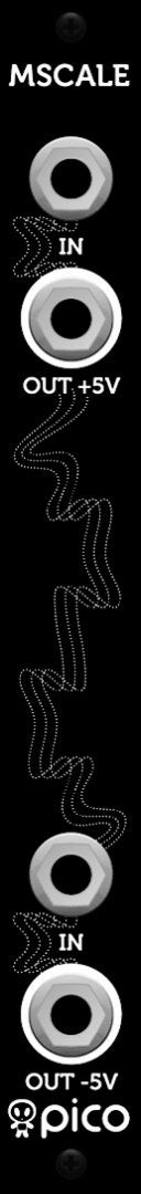 People who own Moog Mother 32 know that it requires -5V - +5V on 1V/oct input to operate in full range, while the eurorack standard is 0V - +10V. So, to control Moog Mother 32 from a eurorack sequencer you need to bias a sequencer output for 5 volts down. And vice versa – Moog Mother 32 sequencer outputs -5V - +5V on 1V/oct output, and, if you wish to control some eurorack VCO from Moog Mother 32, you need to bias it 5 volts up. This is exactly what MSCALE does – it has two sections – upper one adds 5V to the input voltage, other subtracts 5V form the input voltage. Of course, the module is not limited for use with Moog Mother 32 only. You can use it as a regular eurorack precision voltage scaler.