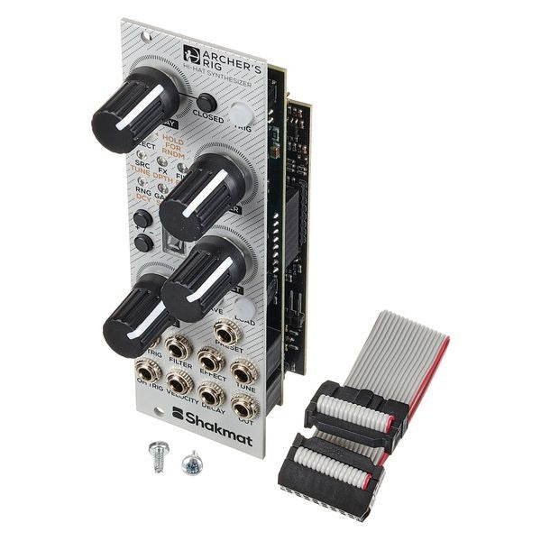 The Archer’s Rig module offers a hybrid analog/digital architecture delivering a wide palette of sounds, from classic hi-hats and shakers to innovative bells. Its digital audio generator includes 13 source algorithms and 9 audio effects, processed through an analog chain featuring filters, distortion, and a VCA.