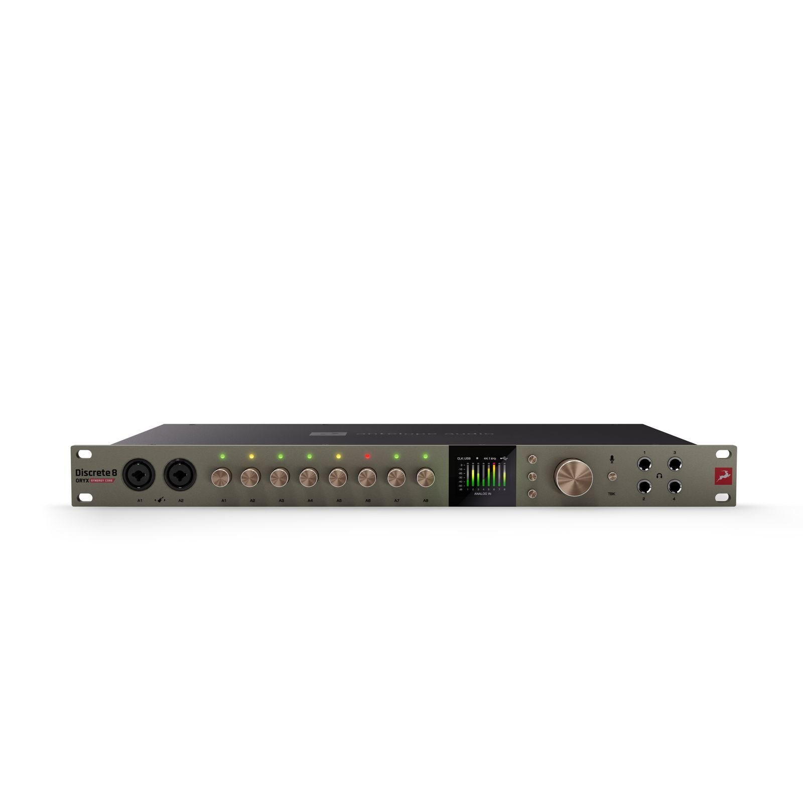 The Discrete 8 Oryx brings our latest innovations into a powerful, affordable studio hub for producers, engineers, and bands. Built for multi-instrument recording and hybrid workflows, it combines pristine conversion and clocking, console-grade preamps, real-time FX processing, advanced headphone tools, and expansive routing — all in one rack unit.