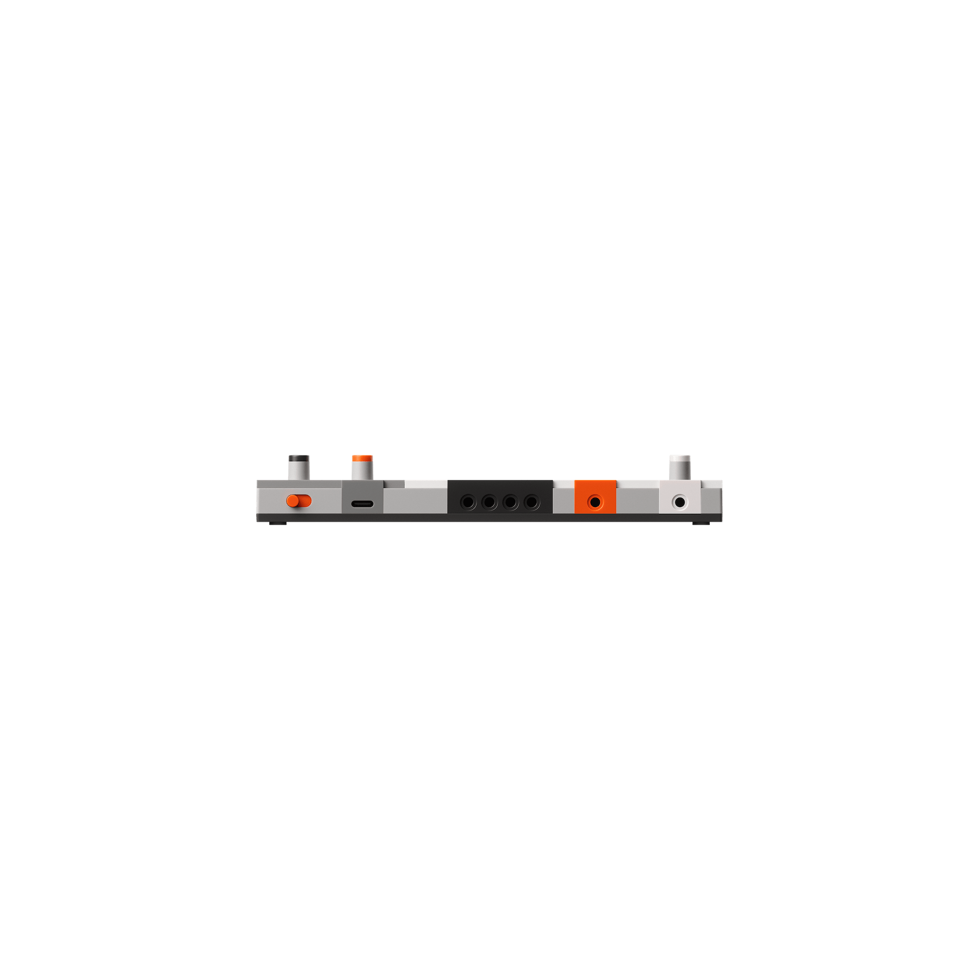 - 1 stereo įėjimas/išėjimas, sinchronizavimas, MIDI įėjimas/išėjimas ir USB-C
