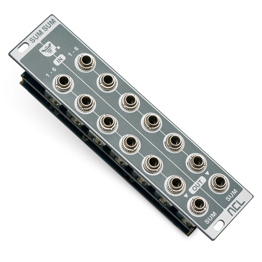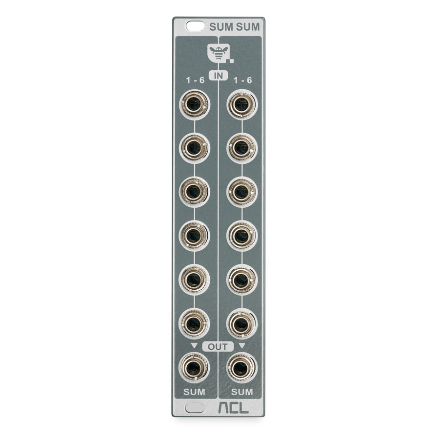 Unsolicited advice We don′t need to tell you how SUM SUM might be used, but since you′re here, we′ll make some suggestions. From a CV point-of-view, it can combine multiple modulation sources − for example, an LFO, an ADSR envelope, a key-follower, and an envelope-follower, all working together to control a filter′s cut-off. And from an audio perspective, it offers a highly space-efficient way to stack up multiple oscillators for unison patches, without compromising signal quality.