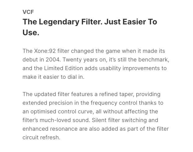 - Revised VCF filter (low-pass to high-pass, band-pass, notch filter, all-pass) incl. resonance