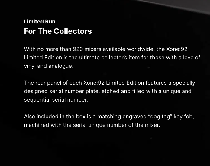 - Limited Edition - limited edition of the legendary "Allen & Heath Xone 92" mixer to 920 units worldwide