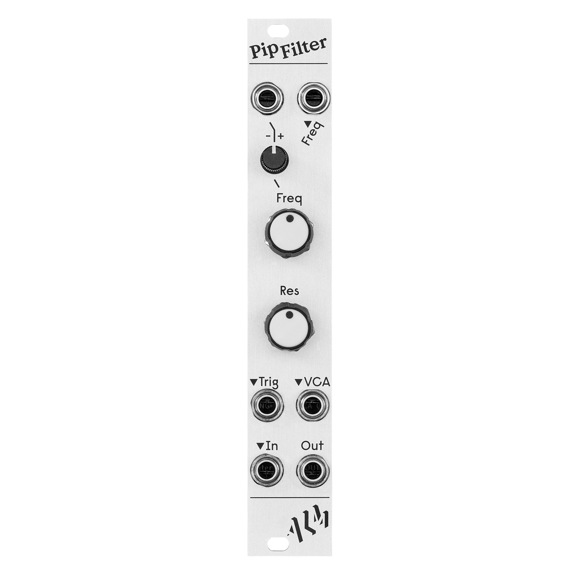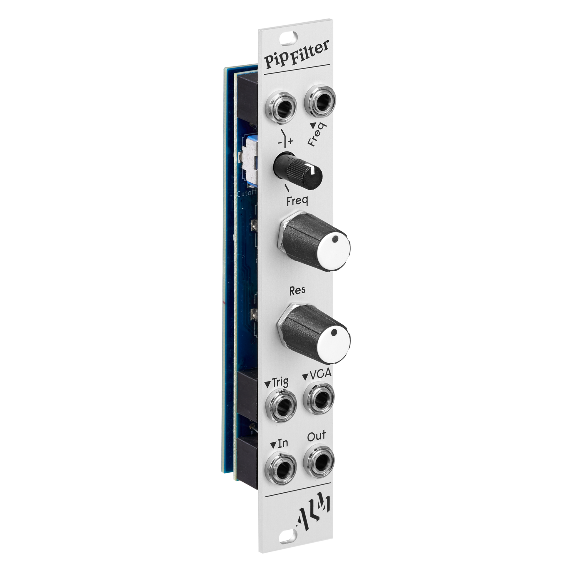 The ‘Pip Filter’ is a compact 4HP voltage controlled 2 pole low-pass filter with resonance, a ‘pingable’ trigger input and built in VCA.
