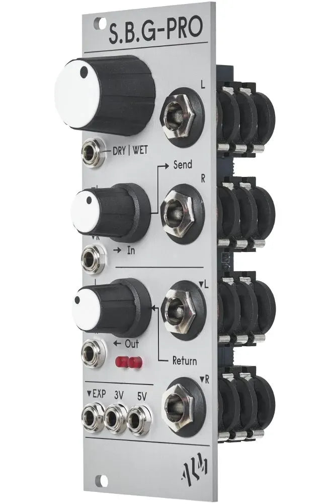The module extends its sibling, the original S.B.G, by adding full size stereo balanced jack connections and voltage control focusing more on connectivity with not just pedals but also pro audio equipment including rack effects, 500 Series modules and mixing consoles.