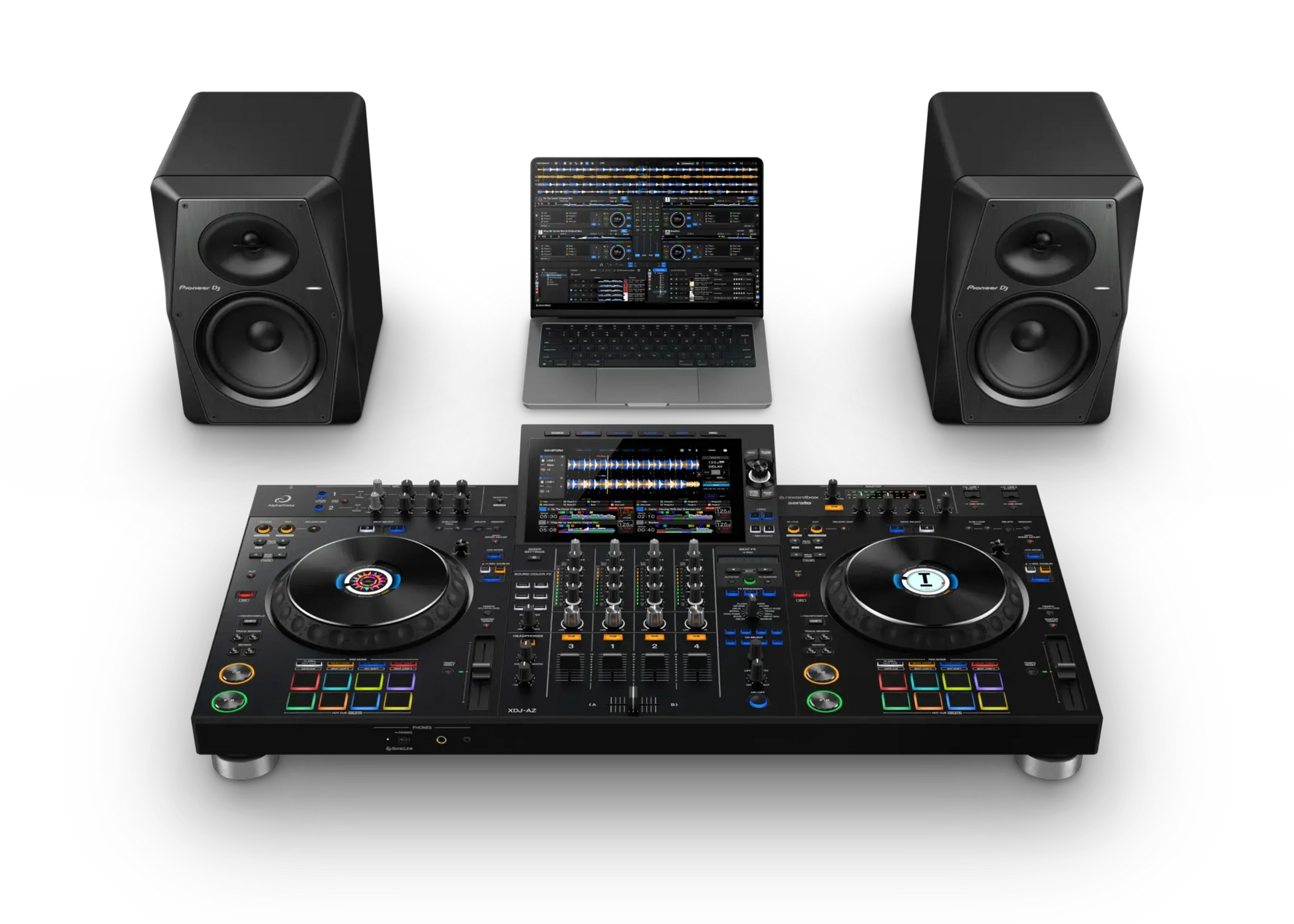 The XDJ-AZ inherits the layout and feel of the DJM-A9 and our flagship CDJ-3000 to give you an intuitive experience. When using the unit, you’ll feel at one with the decks, allowing you to be even more creative in your performances. The full-size jog wheels feel just like those on the CDJ-3000, delivering incredible smoothness when pitch bending and scratching. The mixer section is laid out in the same intuitive way as the DJM-A9 for maximum playability. And the easy-to-use buttons for assigning Beat FX help you express yourself even further. Trust us: once you get to grips with the XDJ-AZ, you’ll understand how typical club DJ setups work and feel – making it much easier to play your best there, too.