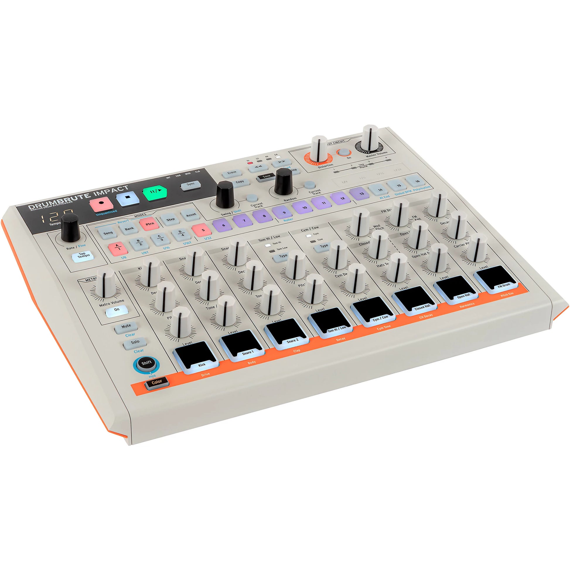 The Arturia DrumBrute Impact 1984 delivers a powerful combination of classic analog percussion, modern features, and a redesigned off-white vintage-inspired aesthetic. Tailored for electronic musicians and producers, this compact drum machine offers dynamic and inspiring beat creation tools. With a 64-step polyrhythmic sequencer, built-in distortion, and programmable per-voice Color variation, you'll have everything needed to craft energetic, customized rhythms with serious attitude.