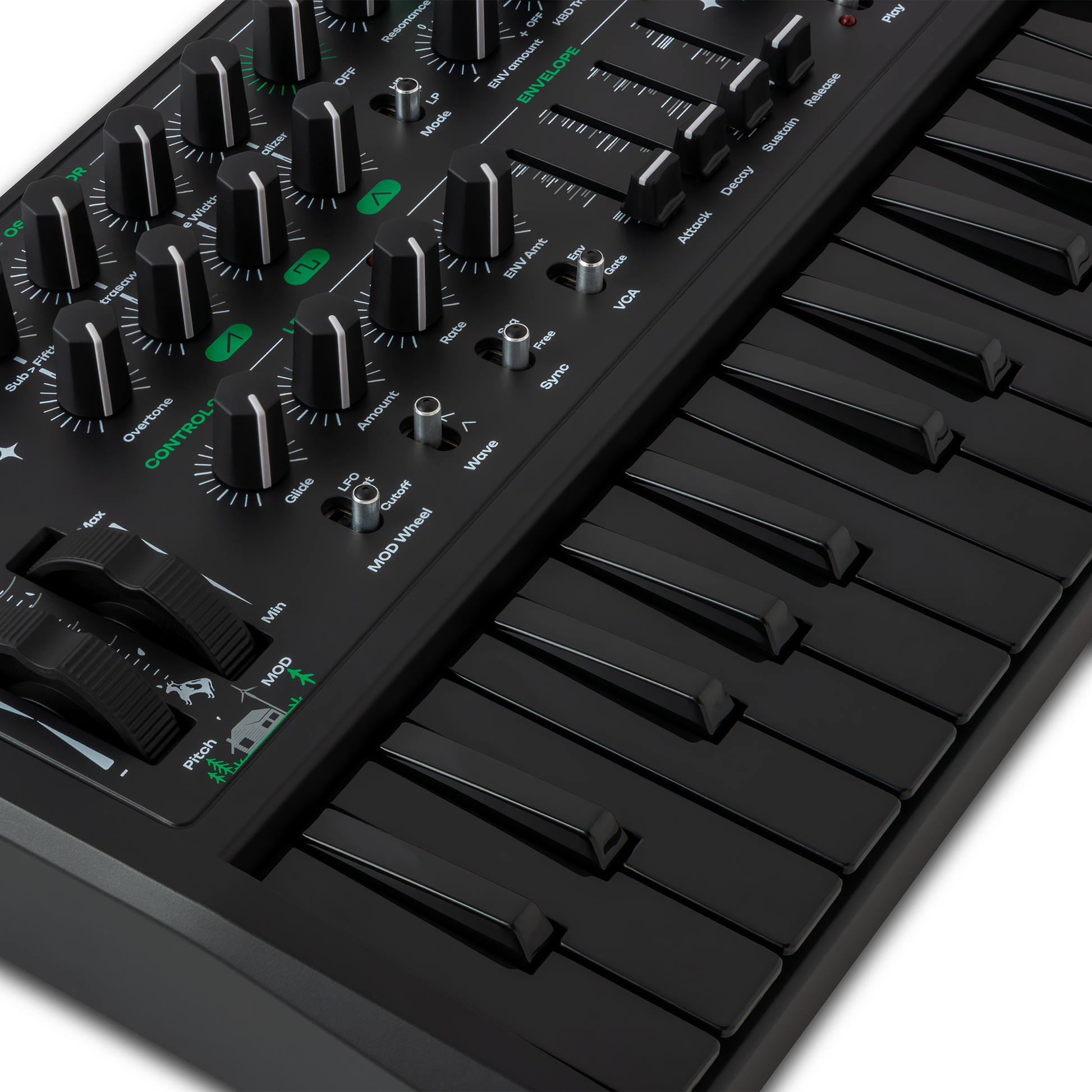 - Oscillator mixer: Sub, Sawtooth, Square, Triangle