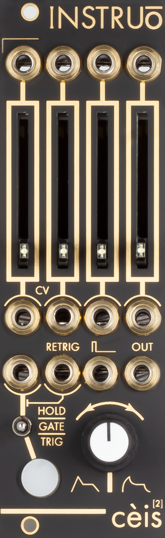 The Instruō cèis[2] is a fully analogue voltage-controlled ADSR envelope generator. The ADSR function generator is the model pioneered by the