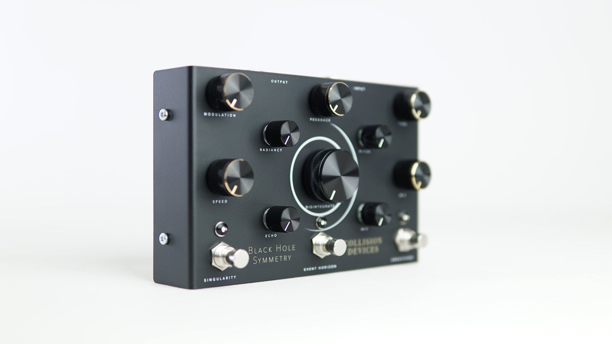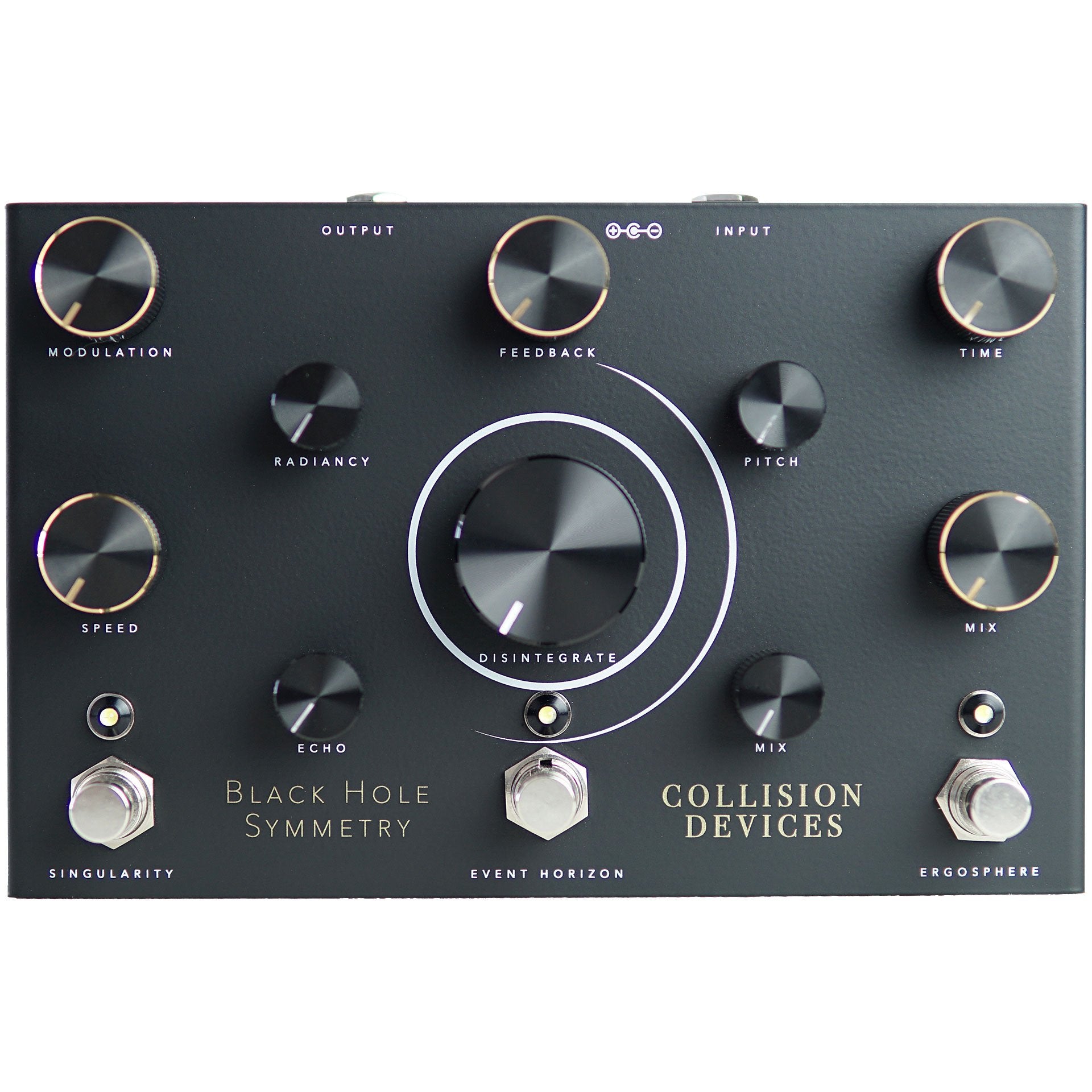 The Black Hole Symmetry is a Modulated Delay / Pitch shifted Reverb / Destruction Fuzz pedal. Travel through the Ergosphere, the Event Horizon and the Singularity. The 3 parts of the pedal which can be played together or separetely.