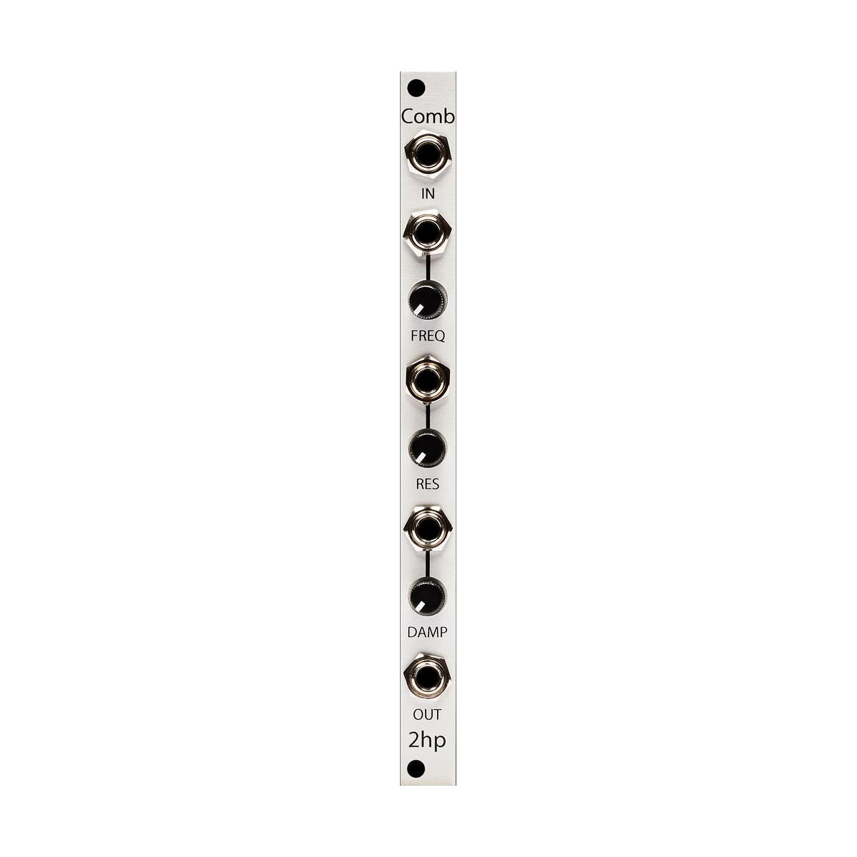Comb is an IIR peaking comb filter with control over cutoff frequency, resonance that can be driven into self oscillation, and a dampening filter in the feedback path.