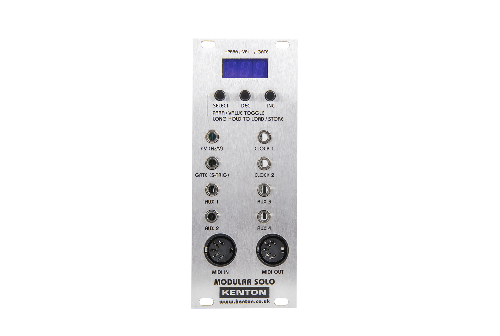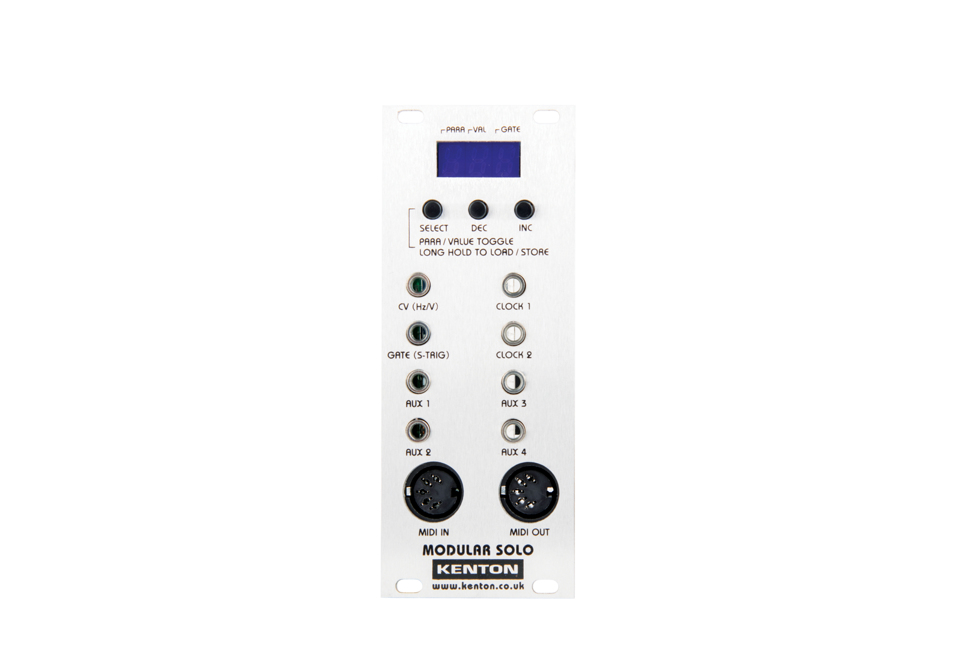 The Modular Solo is the perfect MIDI to CV converter for Eurorack modular users. Featuring the rock-solid tuning stability that Kenton converters are famous for, the Modular Solo also includes four continuously variable auxiliary outputs for controlling other aspects of your modular system; as well as two dedicated clock outputs (which can be set to different division ratios) for keeping everything synched up to MIDI clock.