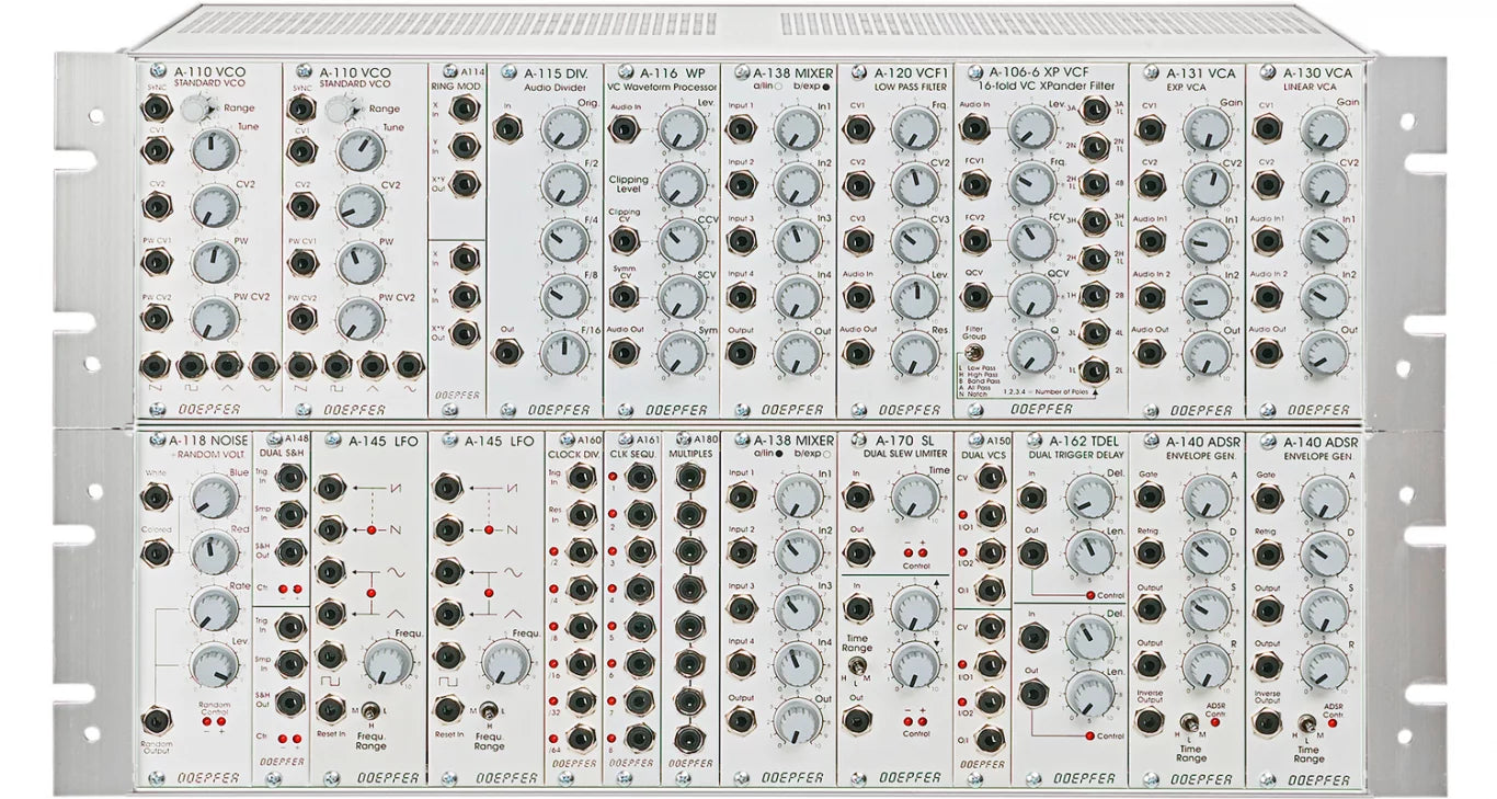 Expandable modular setup with standard Doepfer A-100 modules