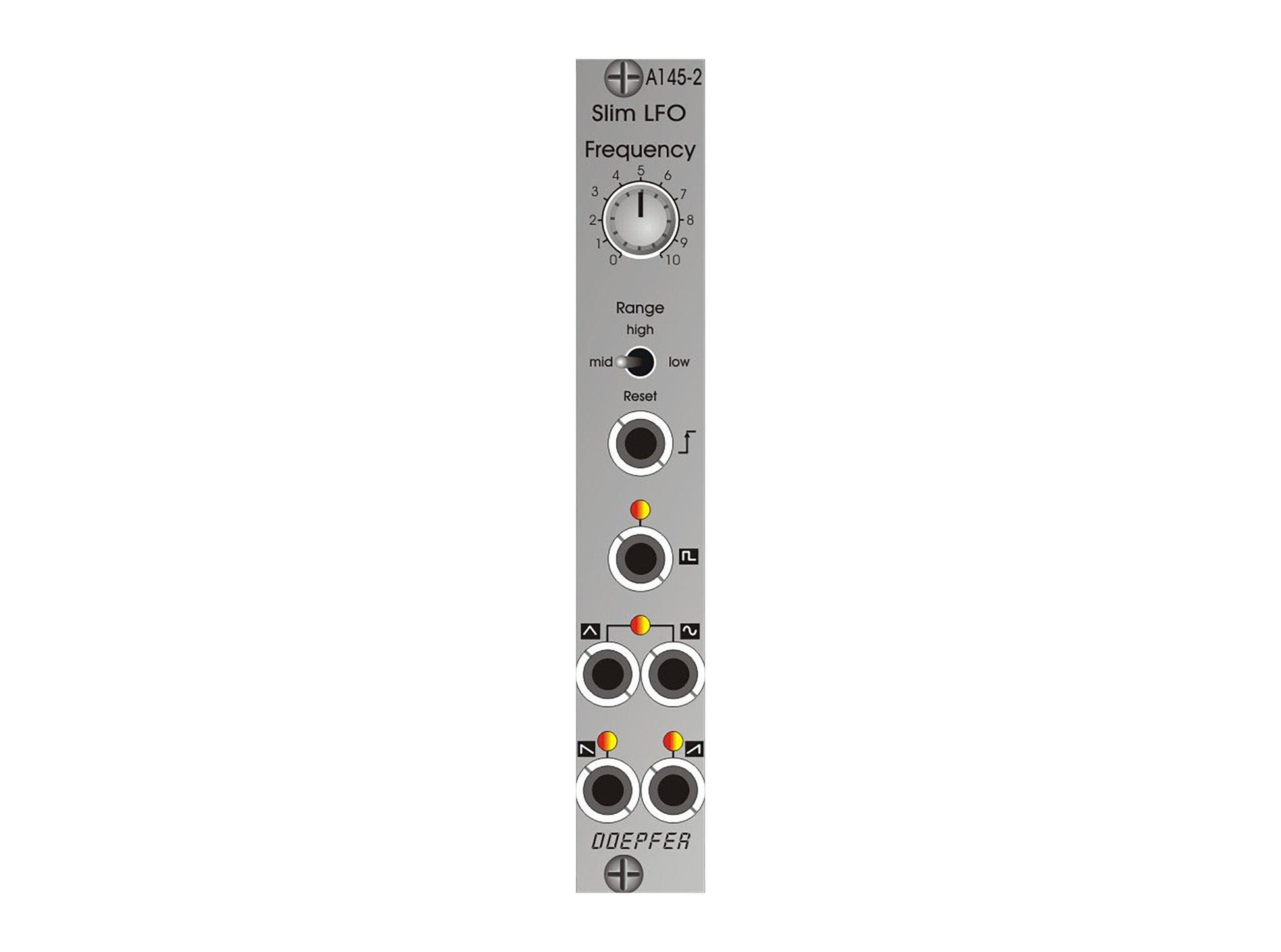 The Doepfer A-145-2 is a compact low-frequency oscillator (LFO) from the Slim Line Series, designed to provide rich modulation capabilities in a small form factor. It offers five simultaneous waveform outputs—sawtooth, inverted sawtooth, triangle, sine, and square—making it versatile for modulating VCOs, filters, VCAs, and more.