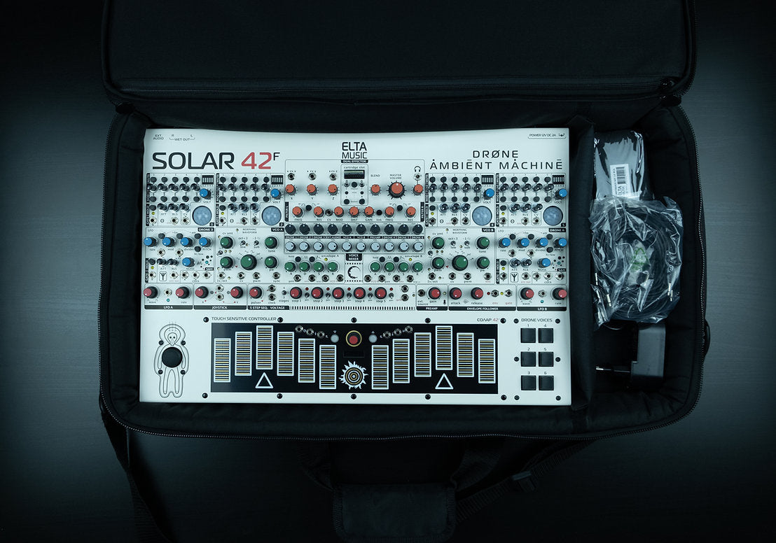 Soft bag for synthesizer SOLAR 42 / SOLAR 42 F. With a compartment for wires, power supply and cartridges. The compartment holds the entire set with a reserve. Good quality from the manufacturer of bags for synthesizers SOMA. External dimensions 68 by 35 by 10 cm. Weight 2.1 kg