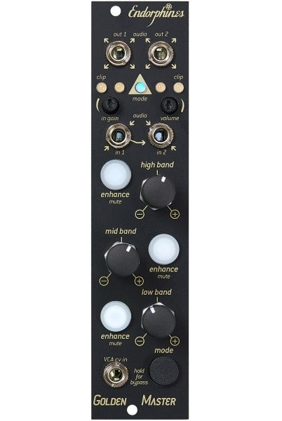 The Endorphin.es Golden Master_BLCK is an essential mastering module for modular synthesizers. With multiband compression, equalizing, and stereo imaging, this module helps enhance your sound quality and ensures a tight, professional mix within your modular setup.
