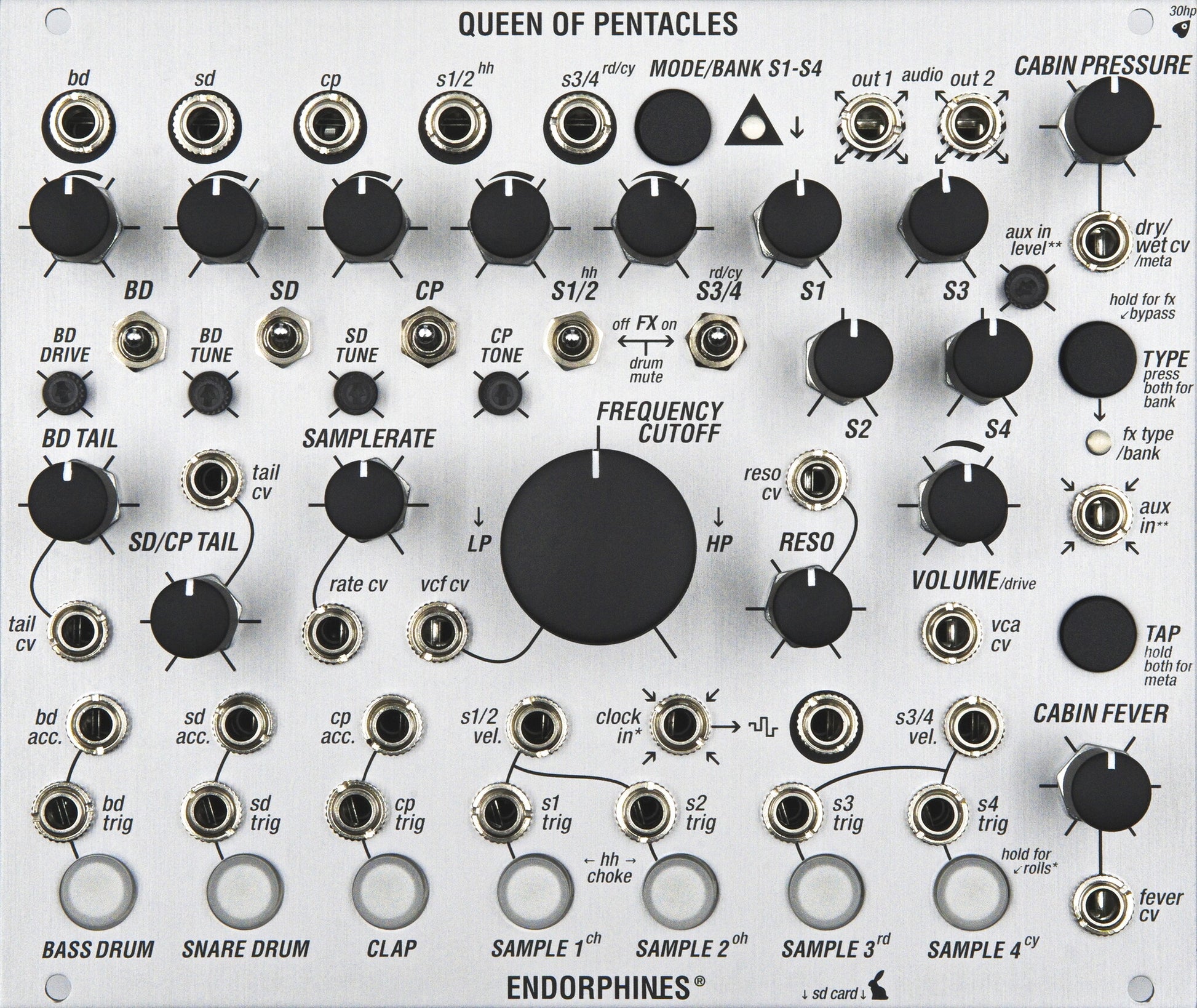 4 sample-based drums (e.g. hi-hats, ride and crash cymbal – or simply use your own samples via SD card) – including a set of freshly recorded samples for modern electronic music using handcrafted Paiste 602 15” and 18” cymbals