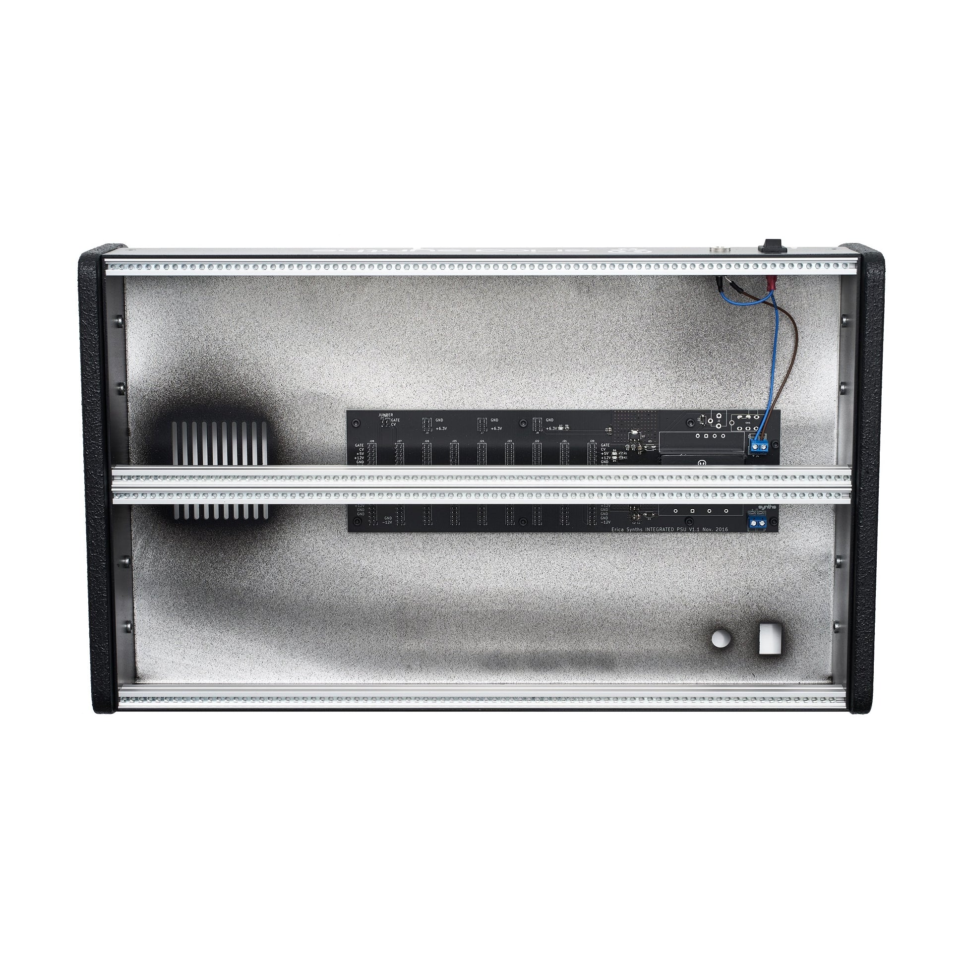 This case has integrated Erica Synths PSU capable of 1.25A per rail (2.5A total).