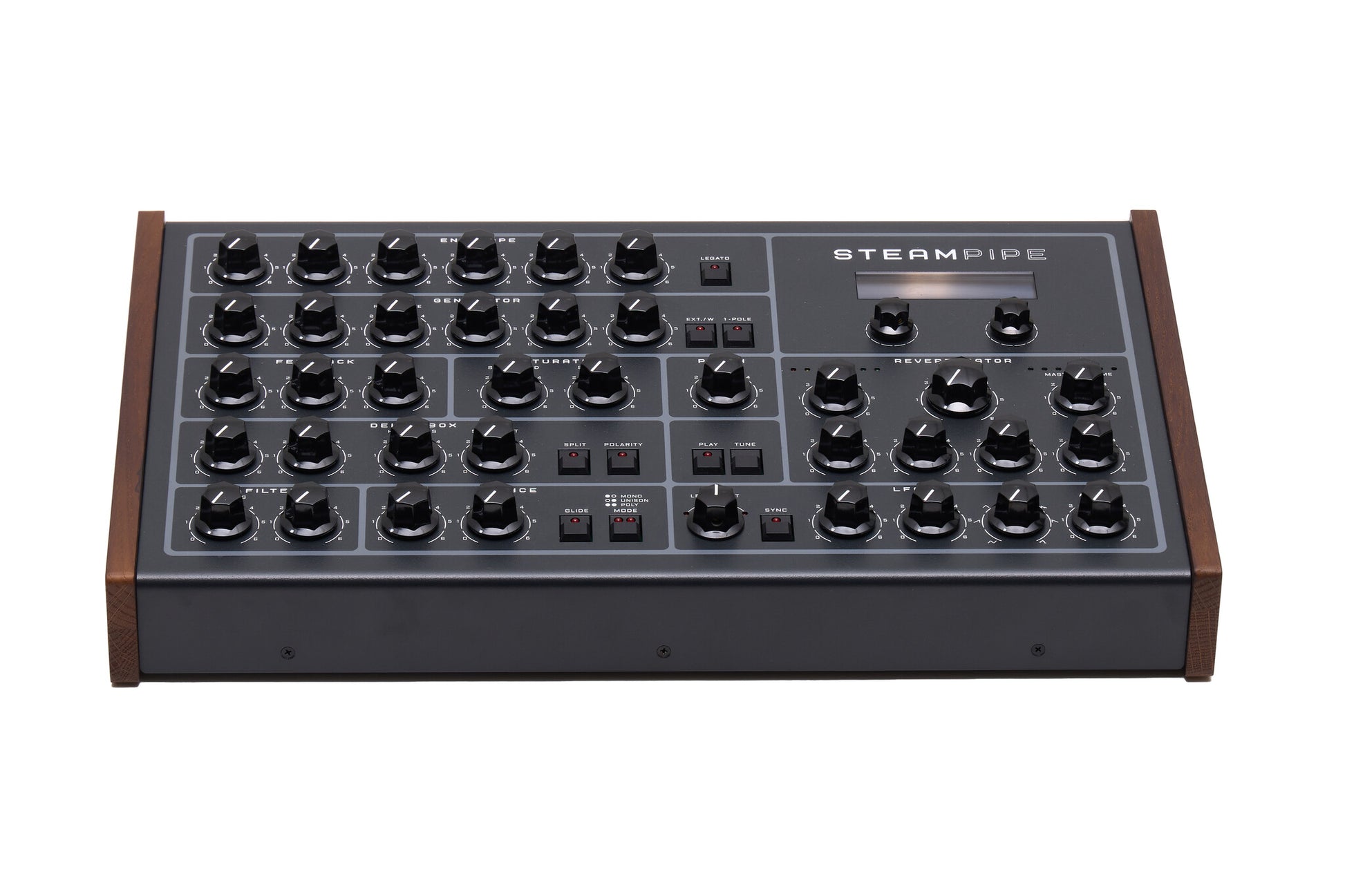The Steampipe is an 8-voice polyphonic synthesizer, but it has no conventional oscillators. Instead, it mimics the way sound is created in wind and string instruments and it is fine-tuned to create a wide range of sounds. The Steampipe is optimized for performance with wind MIDI controllers and it works great with any MIDI keyboard. The overtones the Steampipe produces are very organic and rich. It also comes with great-sounding presets.