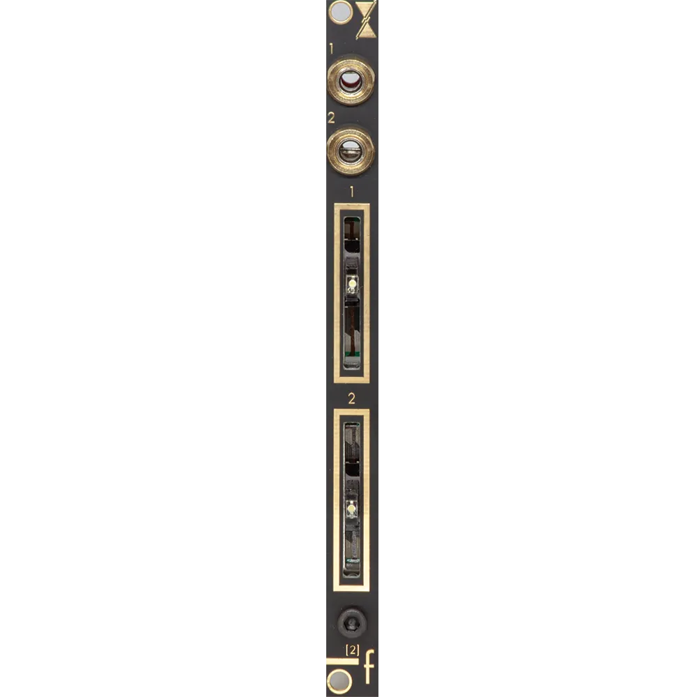 Faders are oft considered a superior interface. The [2]f module gives you two manual faders providing linear uni-polar positive output control voltages, 0–5V or 0–10V defined using the jumpers on the back.