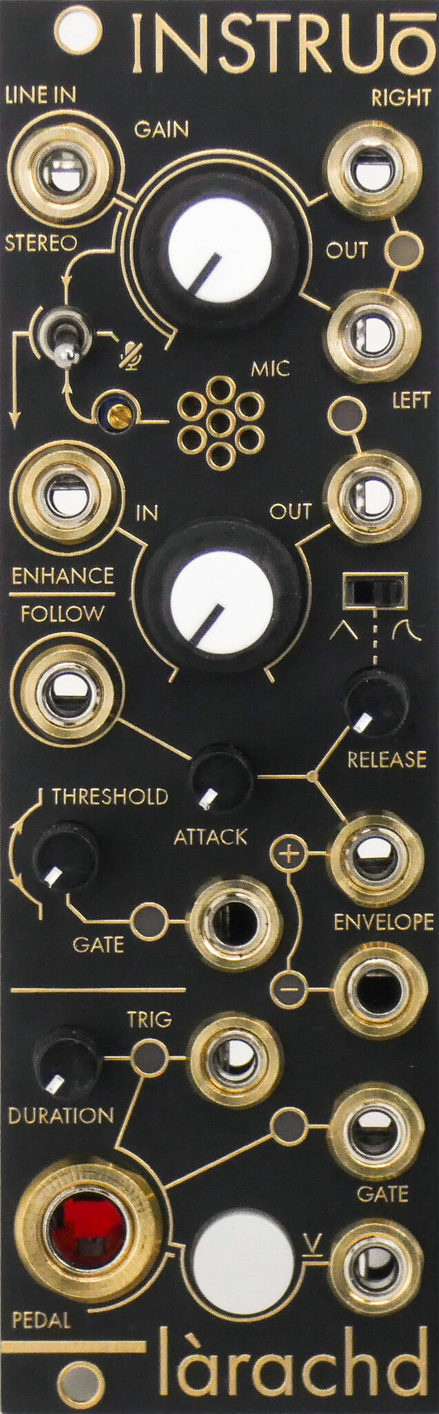 It features a stereo line level to dual mono modular level converter, condenser microphone, audio enhancer, envelope follower, threshold comparator, and dual footswitch interface (footswitch included), làrachd is a true “Swiss Army knife” that finds a purpose in every patch.