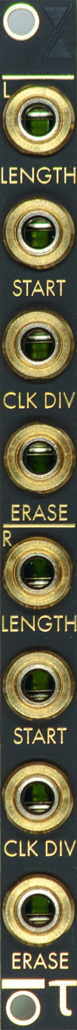 Inspired by the aesthetics and mechanics of early tape techniques each channel features an analogue input circuit which adds slight compression, filtering and saturation. On the first recording, the sound may appear slightly fuller and warmer, re-recording audio back and forth will compound this effect over time allowing you to create dense tape like textures.