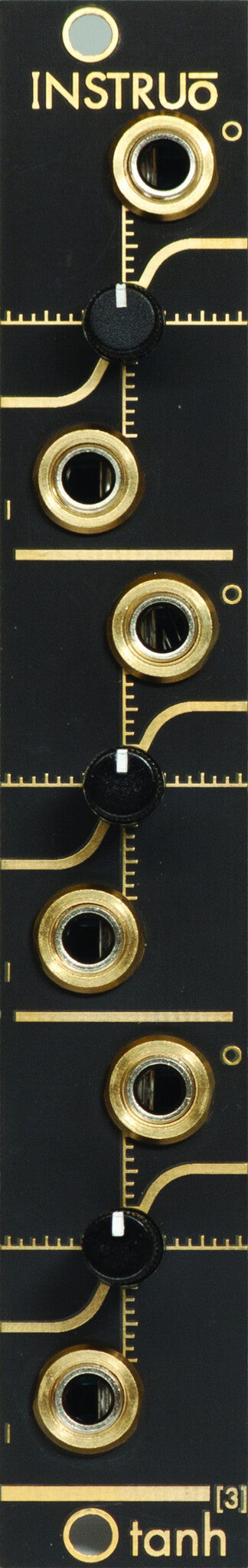 The Instruō tanh[3] is a three channel waveshaper, limiter, overdrive, and feedback controller.