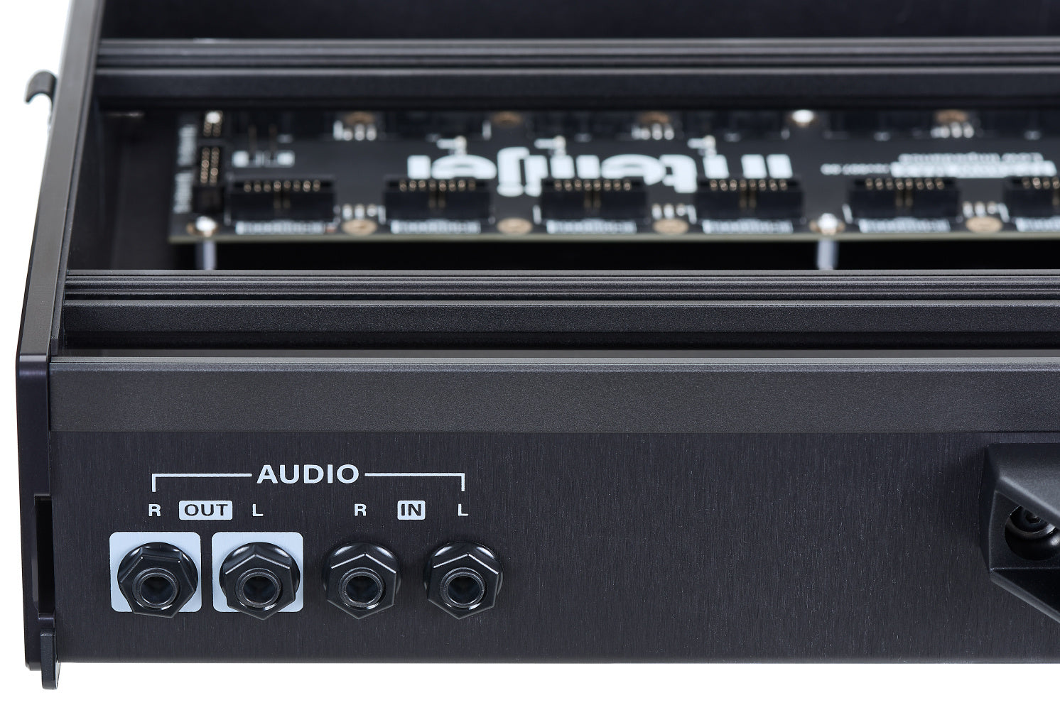 Studio, cafe, stage, floor, coffee table—the 7U Performance case doesn't care where you play with it. Two 3U rows house and power all the modules you love (or one day hope to love), while the additional 1U row accommodates an extensive selection of specialized utility modules. Power, audio and MIDI/USB jacks on the back handle all the necessary inputs and outputs, ensuring all that rack space remains free for the "fun" modules. The lid has enough clearance to keep your system patched in transit, and two cases can be stacked with a set of joiners.