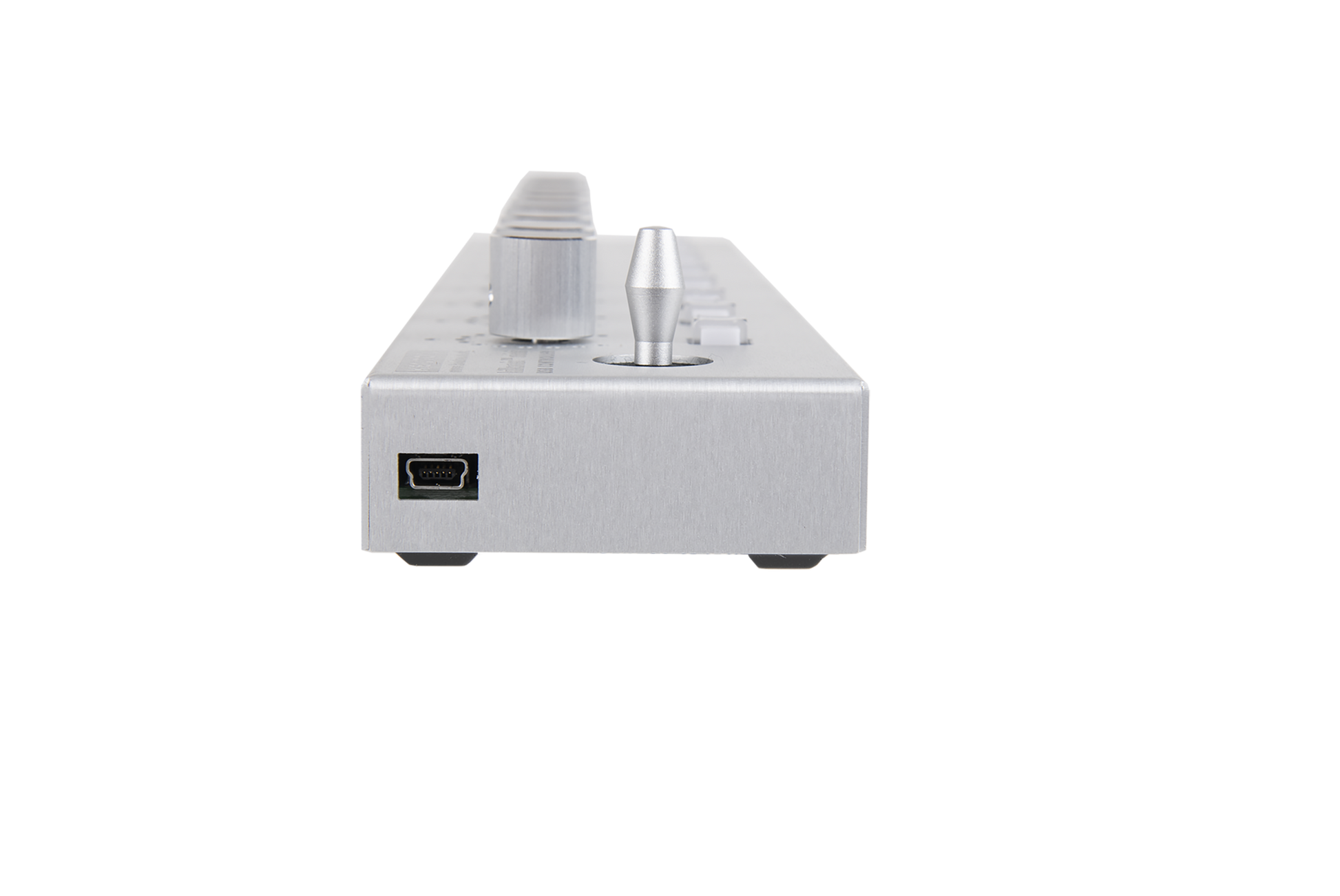 The controller communicates via USB, has 9 endless rotary encoders, 9 push buttons and a joystick. It is USB bus powered for convenience.