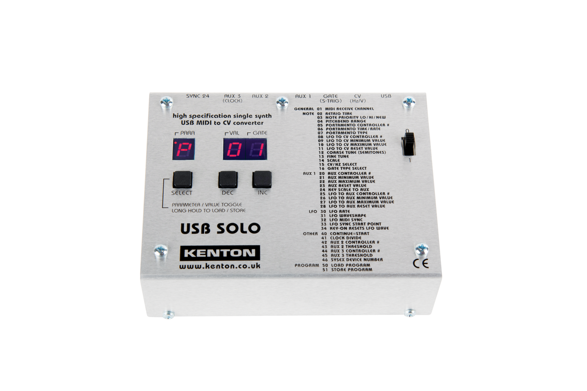 As it both connects and is powered directly from USB, the USB Solo is all you need to control an analogue synthesizer from a computer. With no MIDI interface necessary, and no external power supply, cabling clutter is kept to a minimum. The USB Solo still maintains the famous Kenton tuning stability though, as well as full scale range on the CV and auxiliary outputs thanks to its internal power circuitry.