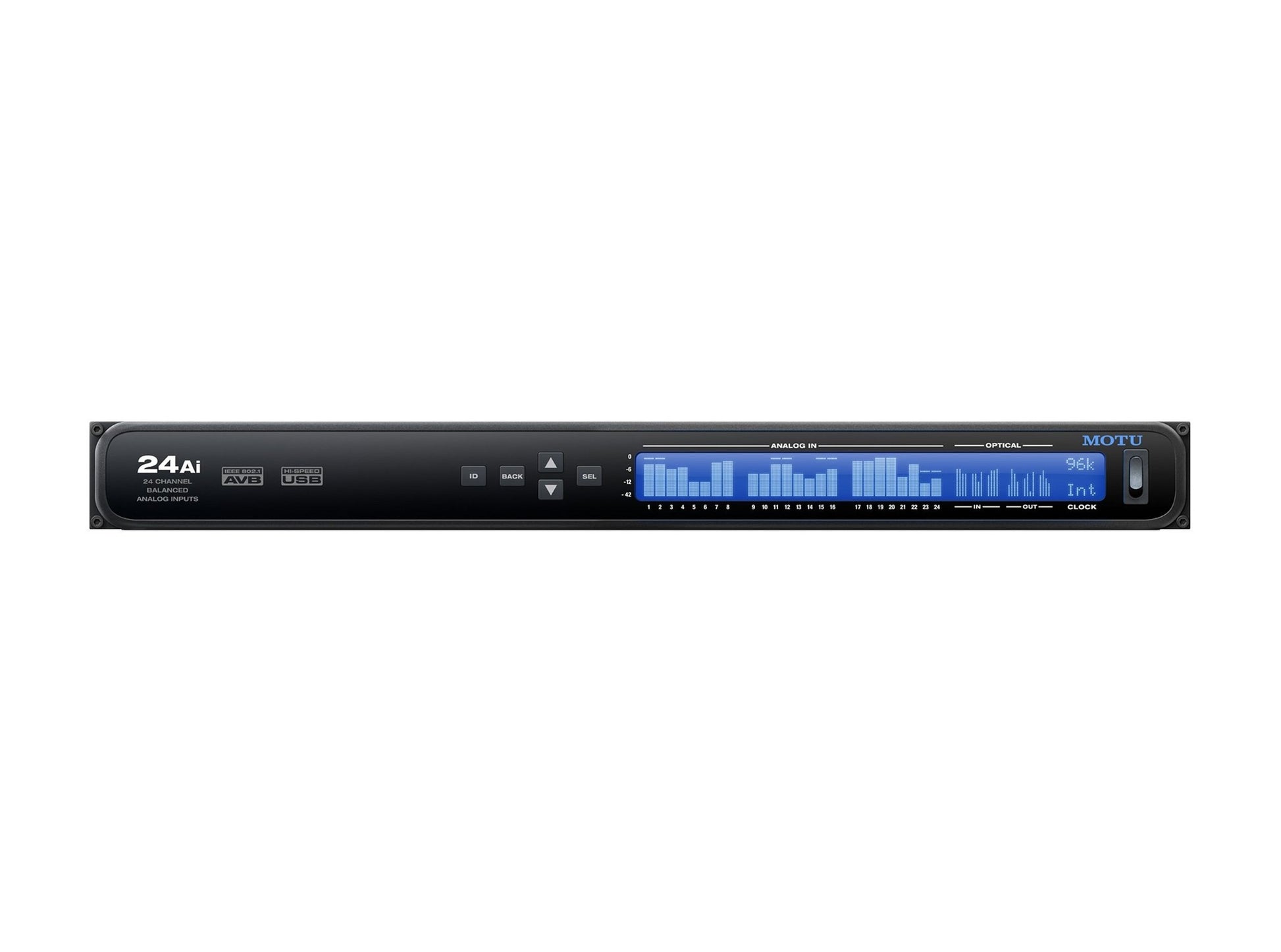 The MOTU 24Ai is a tripartite unit that can serve as an audio interface, standalone mixer, or analog-to-digital converter. The interface boasts 24 balanced audio inputs with three banks of ADAT optical digital I/O—totaling in at a whopping 72 channels in a single rack space!
