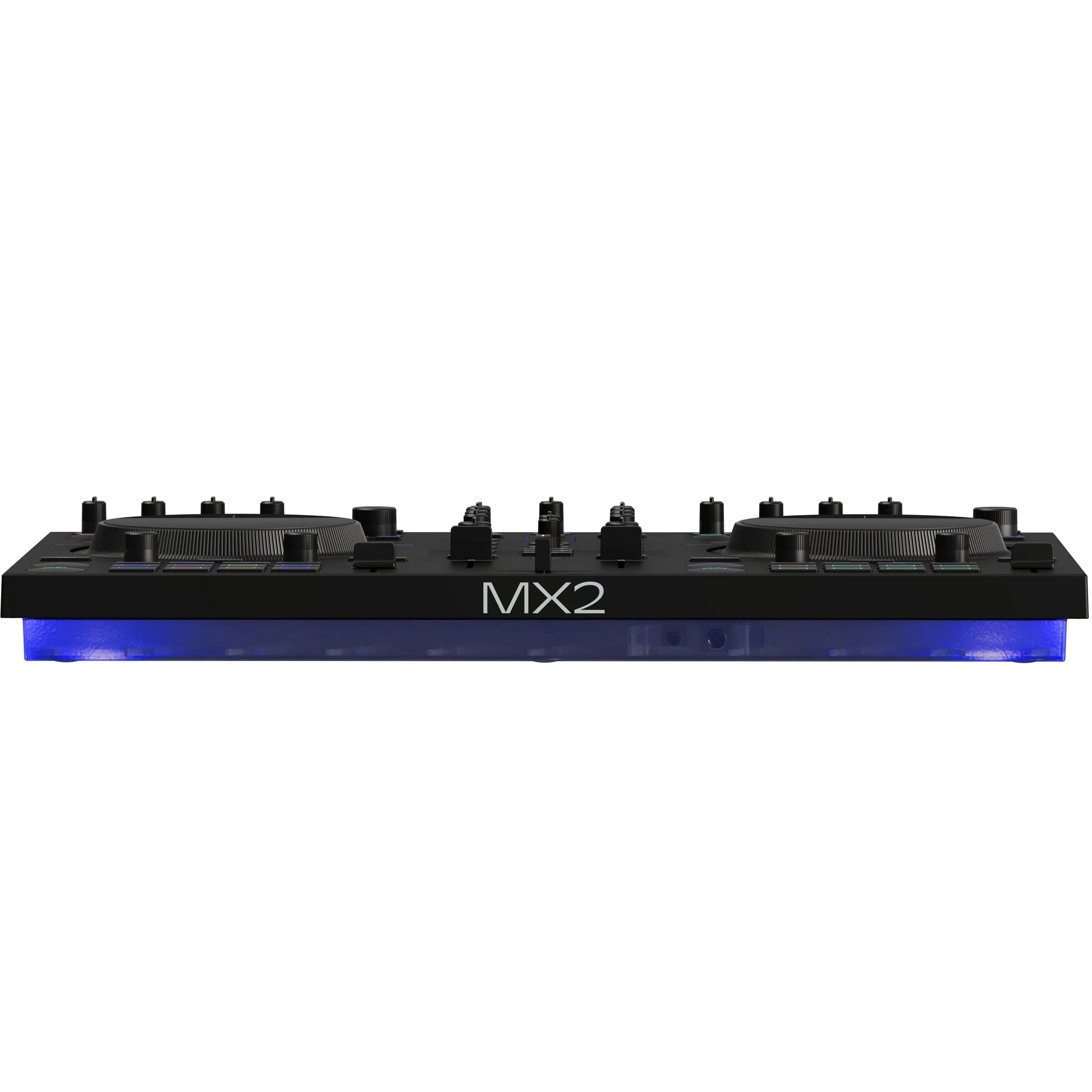 The Native Instruments Traktor MX2 is a next-generation 2-channel DJ controller designed to give emerging and professional DJs intuitive, hands-on control over their performances. Combining high-quality build, a built-in 24-bit / 96 kHz audio interface, and the full version of Traktor Pro 4 software, the MX2 delivers a complete creative DJ solution for home, studio, or club use. Its versatile design includes touch-sensitive jog wheels, RGB performance pads, and pro-level FX controls that bring the power of Traktor Pro 4 right to your fingertips.