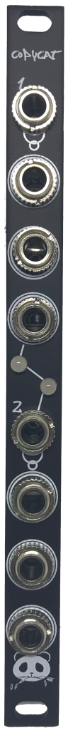 2hp dual Buffered Mult features 2 channels of 3 outputs or 1 channel of 6 outputs if nothing is connected to the second input, it has 2 bi-colour led showing positive and negative voltage.