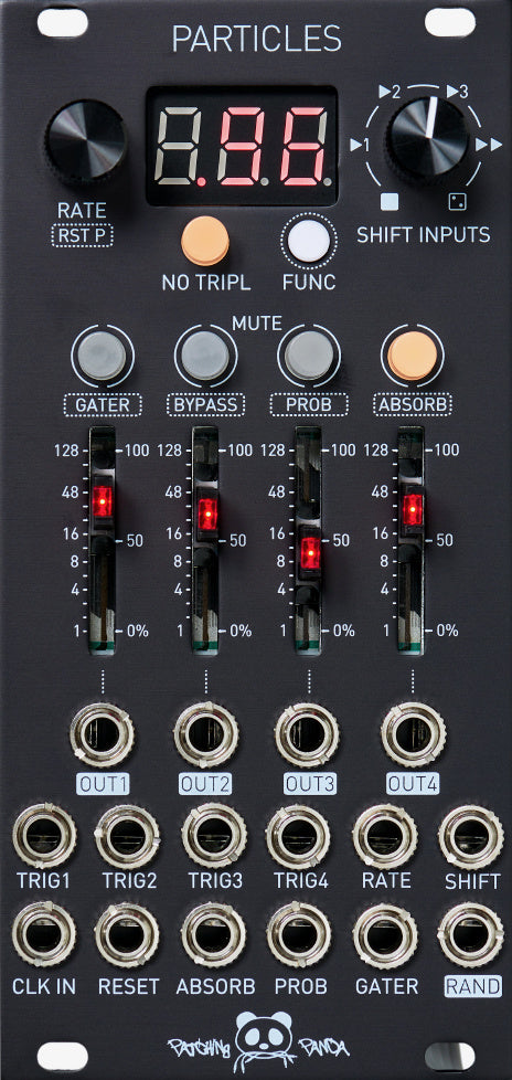 Particles, is 4 channels of trigger modulation, capable of mathematically variating and manipulating your patterns with a combination of features to play with.