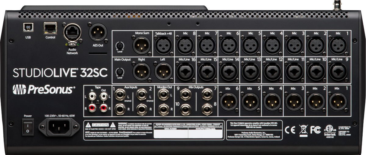 The 32SC also ships with PreSonus Capture recording software, which can be run directly on your mixer or Windows or Mac computer. Record all 32 channels plus a stereo mix of your choosing via USB, to an SD Card, or both for the ultimate redundant live recording rig.