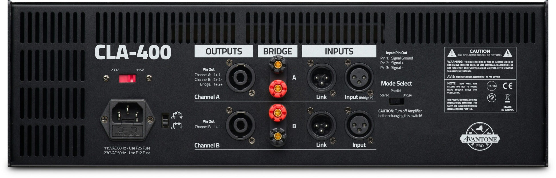 The Pro CLA-400 by Avantone is a premium studio amplifier designed for professionals who demand high-quality, distortion-free sound. With a power output of 400W, the CLA-400 ensures that your passive monitors receive the clean, powerful amplification they need for accurate sound reproduction at any volume. Whether you're working in a large studio or on stage, the CLA-400 delivers outstanding performance and clarity.