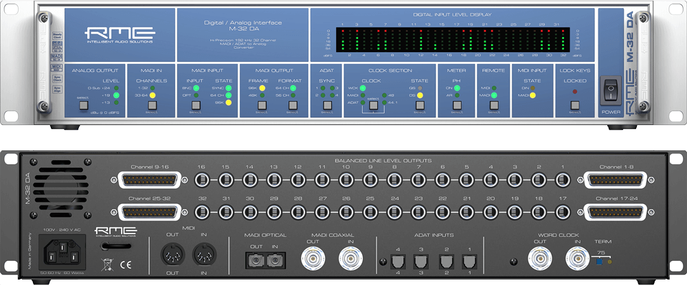 - 1 x MADI I/O, 32 channels @ 96 kHz, 16 channels @ 192 kHz