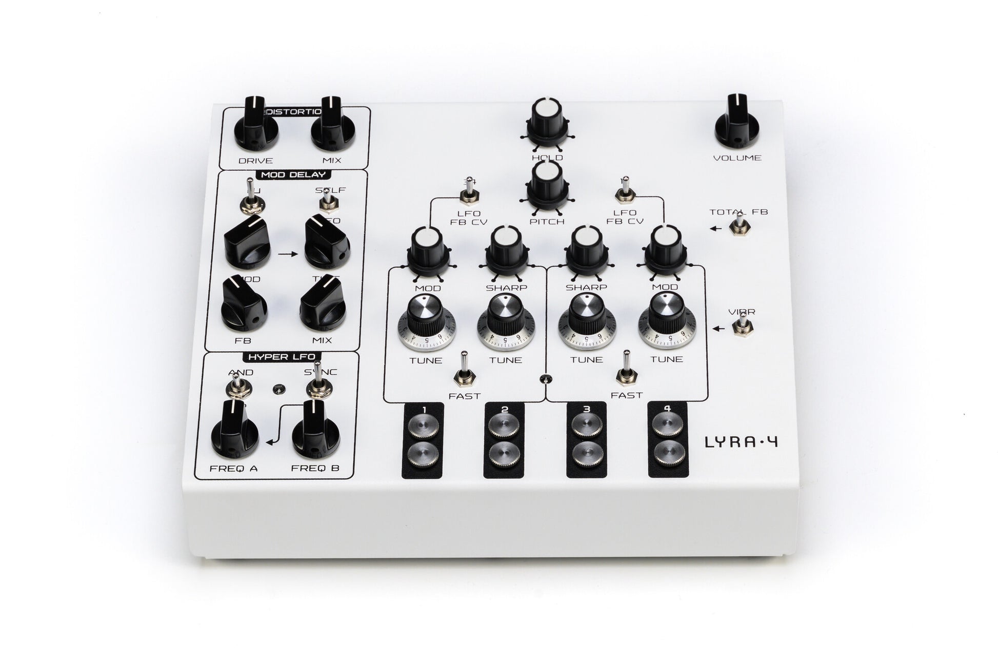We present to your attention the revived version of LYRA-4, organismic synthesizer, the younger sister of the famous LYRA-8. “Organismic” means that LYRA uses some principles that lie in the base of living organisms. The way how LYRA’s modules interacting between each other and the behaviour of the instrument resembles a live conversation. It’s smaller and weighs less but is equally rugged in design, and still packs a lot of punch. This makes it easy to fit in a backpack and perfect for taking the LYRA sound on the road. And playing two LYRA-4s can actually sound very different than just one LYRA-8.