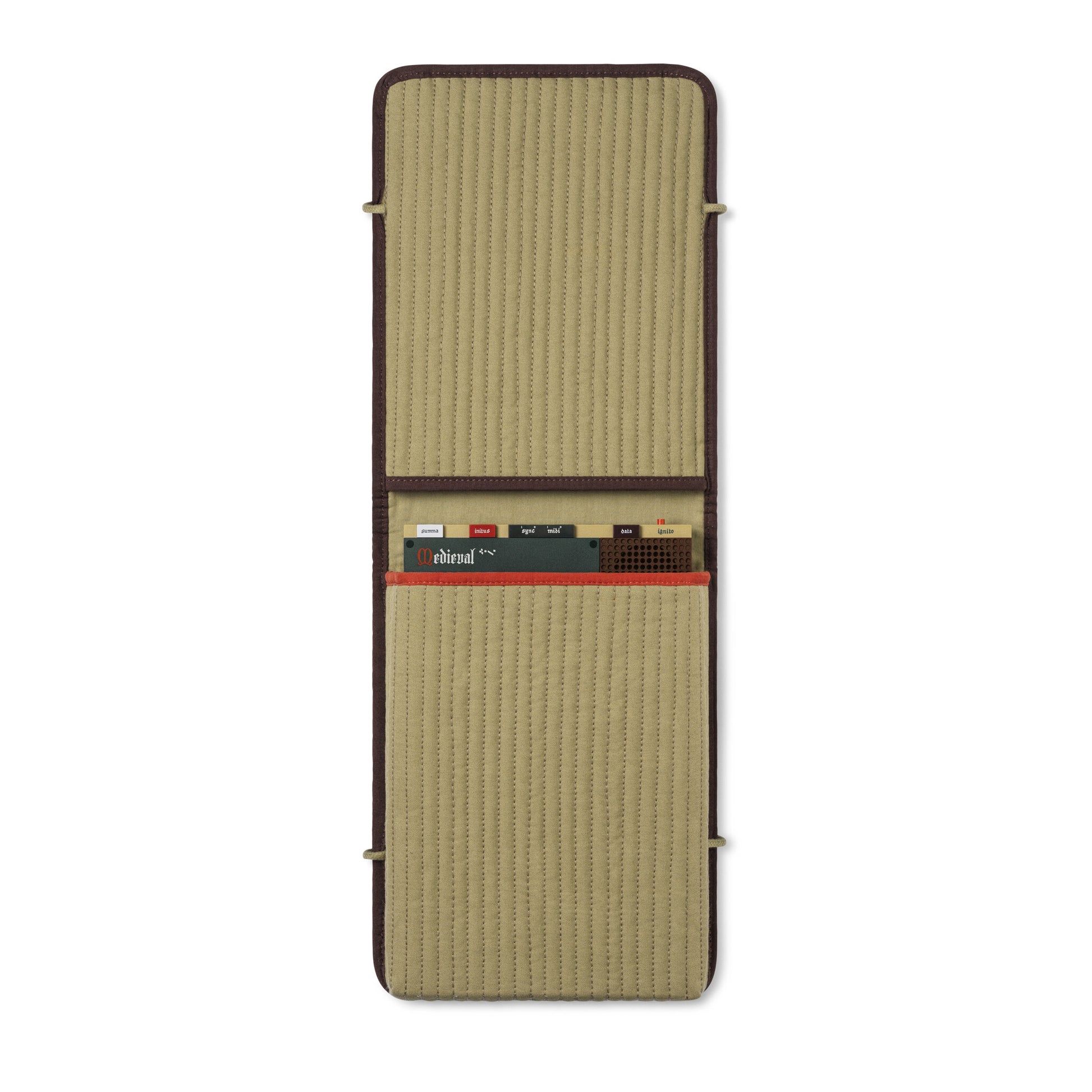 The quilted and padded cotton fabric covers a custom molded hard casing to prevent any outside forces, magical or otherwise, from damaging the device. tie it around your waste or over the shoulder with the long detachable cotton strap. you'll also find a pocket with an internal zip for storing any accessories and cables.