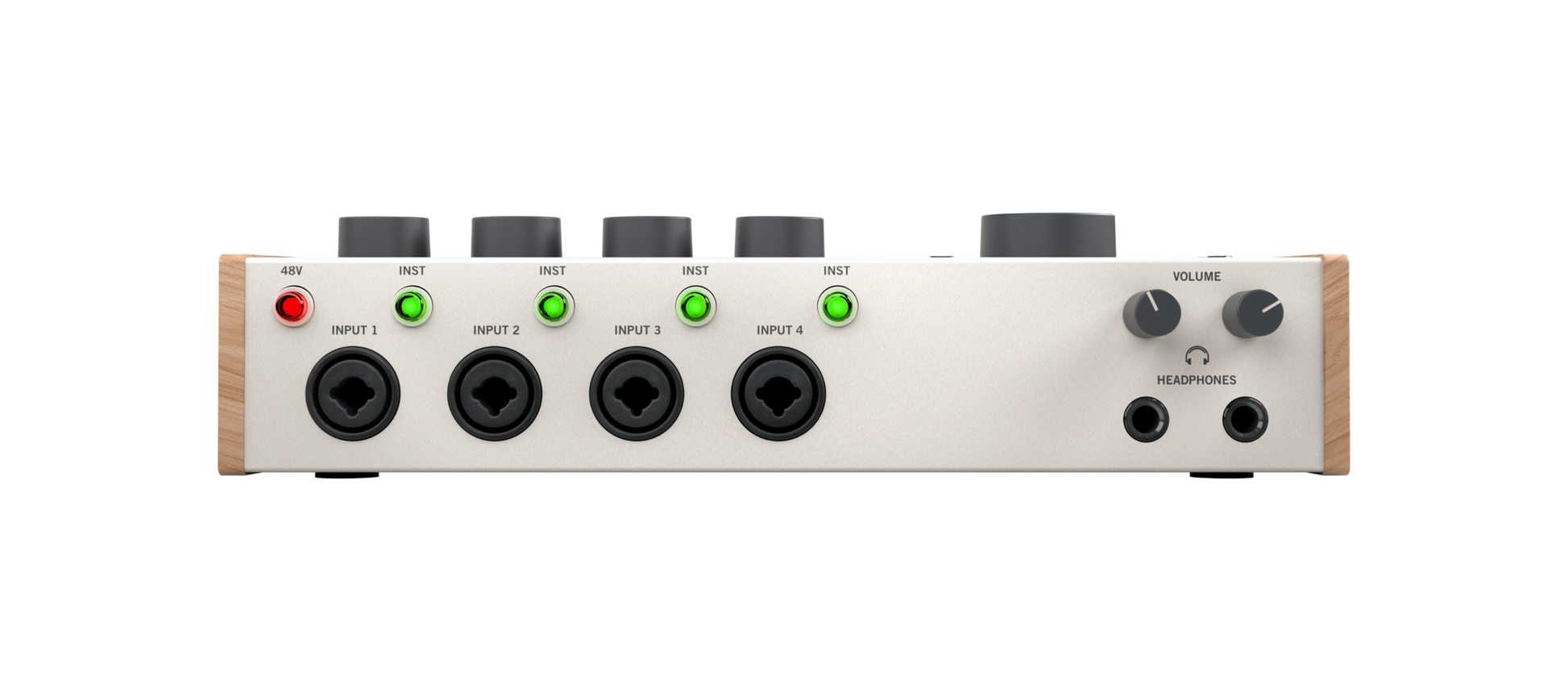 Volt 476P gives you 4 analog preamp inputs — simply plug your mics, guitars, or synths into the front panel. Then connect your speakers or headphones to monitor your audio with no latency. With Volt, you’ll be creating like a pro, fast.