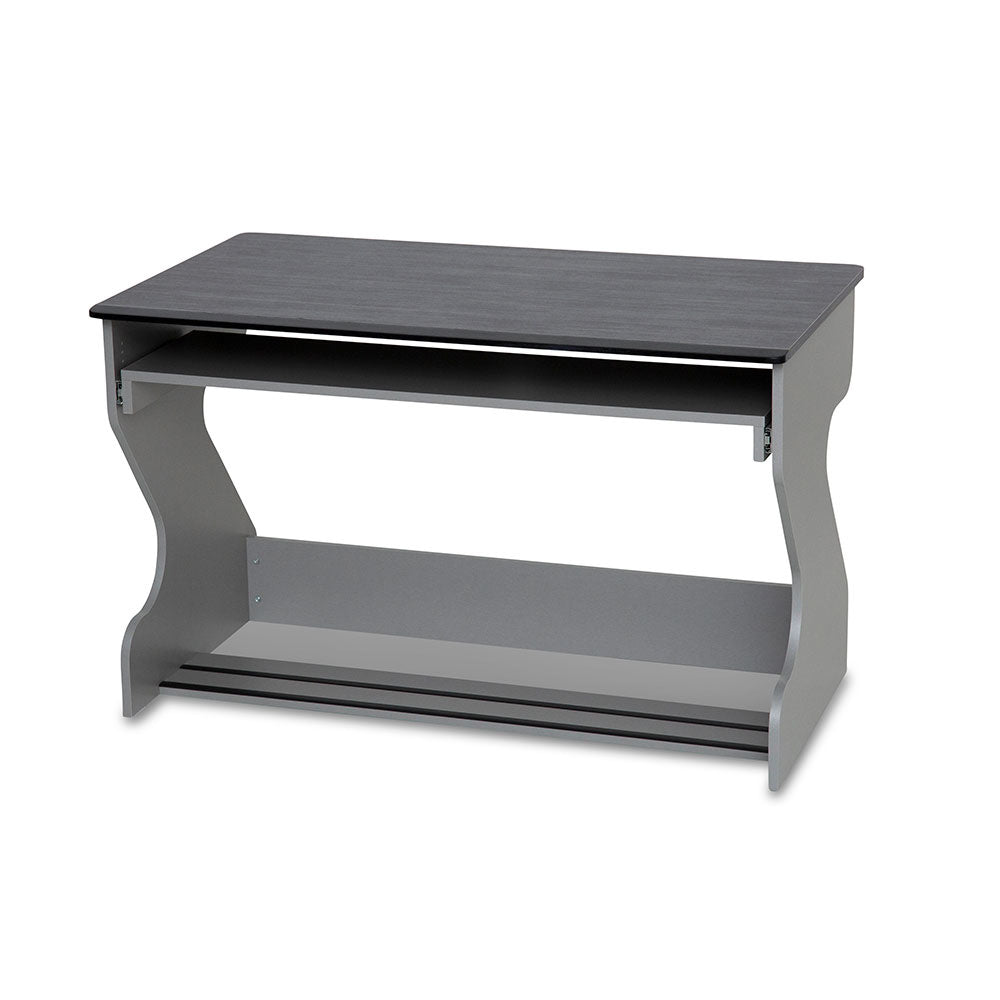 The desktop offers a large amount of real estate for computer screens and desktop devices like audio interfaces or controllers. If you work with a lot of 19-inch gear, you can attach one or two Miza Gripracks to the desk, giving you up to eight units of desktop rack space. A robust and height-adjustable pull-out tray adds extra space for devices like a 61 keyboard; with the new update, the tray has even gained usable width without changing the overall footprint of the desk. You could also just put your keyboard and mouse on the tray and use the desktop for video controllers or a graphic tablet – with its versatility, Miza Jr FLEX becomes exactly what you need.